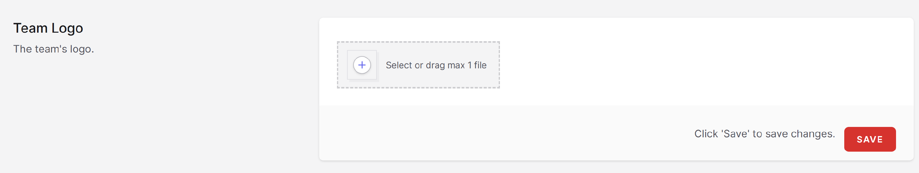 The Team Logo section allows you to upload an image file (.png, .gif, .jpg only) of your company logo for display on the printout of the laytime statement. Click the "+" sign or drag-and-drop a file into the dropzone and click "Save" to save the image to your settings.