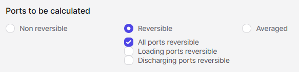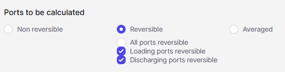 For a calculation with more than one port it is very important to select the proper clauses as agreed to in the charter party. A principal consideration is whether the ports are to be calculated reversible, non-reversible, or averaged which can significantly impact the calculation results.