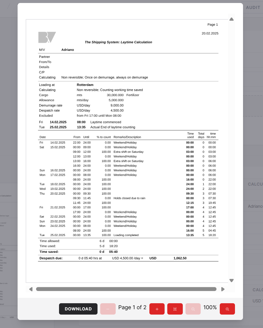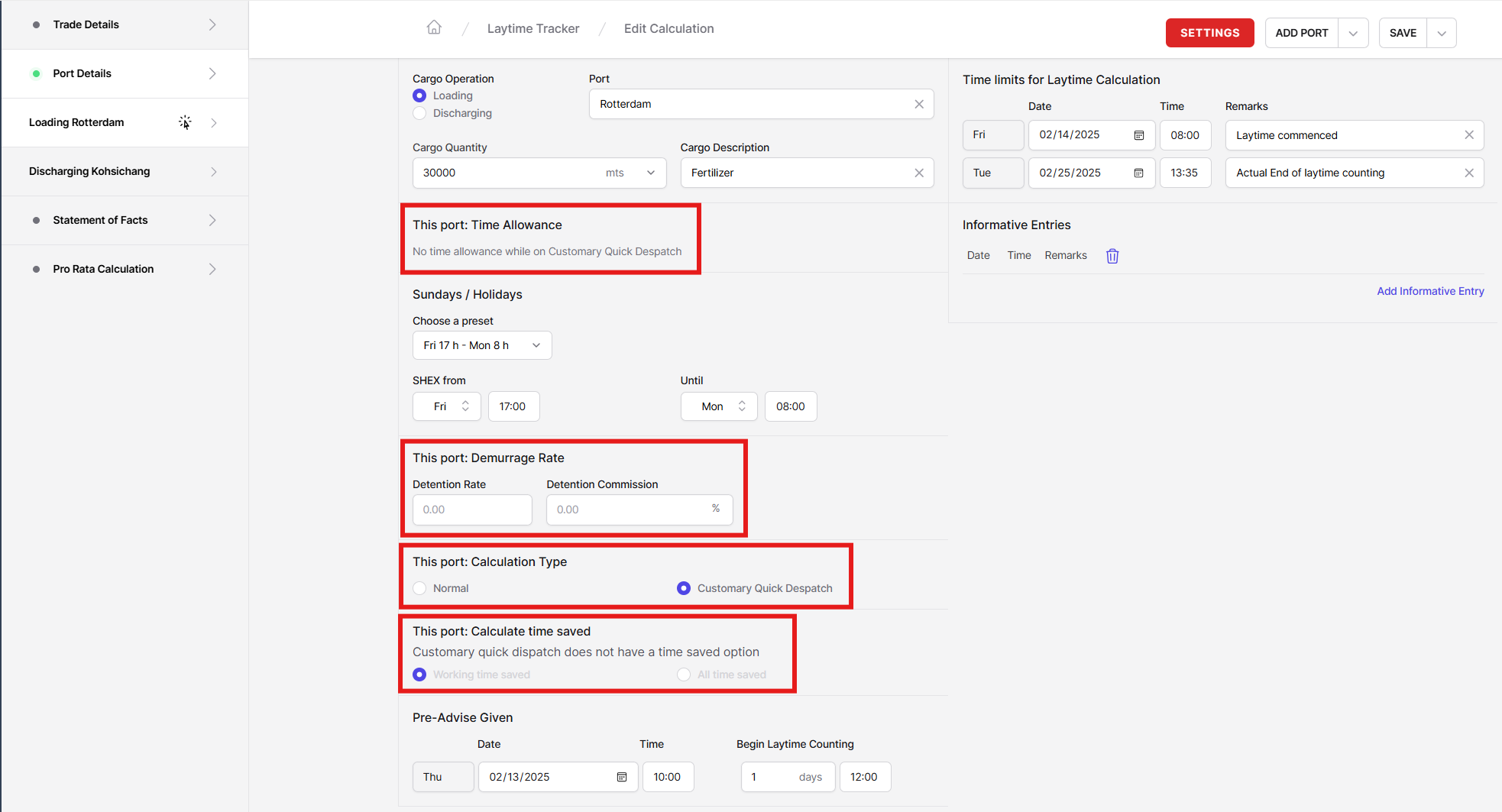 The BV Portal includes a Customary Quick Despatch option (sometimes also referred to as fast as can or detention calculation).