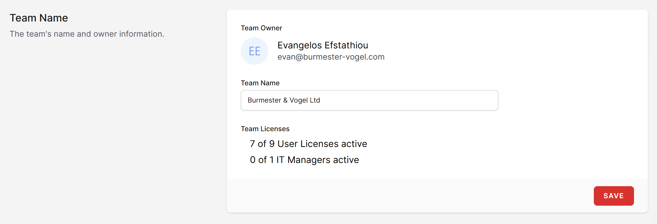 - Team Licenses: The number of active user licenses and IT Manager licenses for your team. Any license type with Edit rights uses a User License, while a limited number of Viewer and IT Administrator licenses are provided to each team at no additional cost.